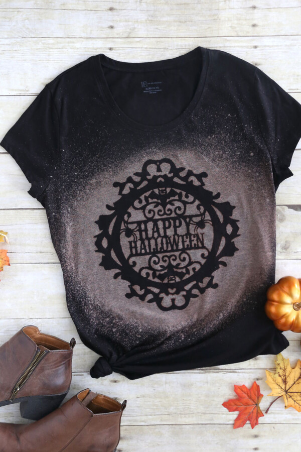 Halloween Bleach Dyed T-Shirts are made using cute signs from Dollar Tree and turn out so cool you won’t believe how easy they are to make!