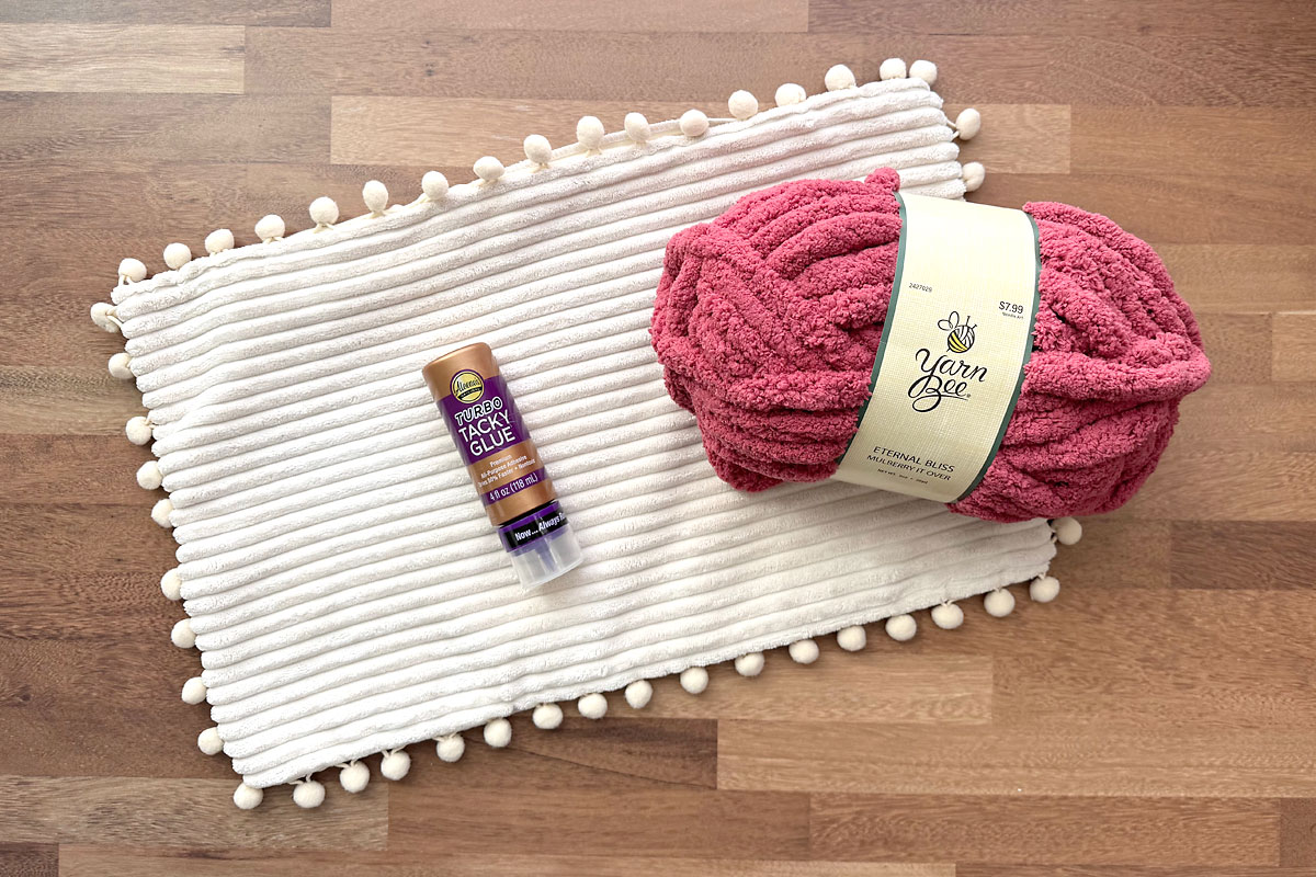 - Pillow Cover and Pillow Form: I used this pillow cover from Amazon – it’s a great price, super cute, and comes with pom poms all around the edge (comes in a 2 pack).