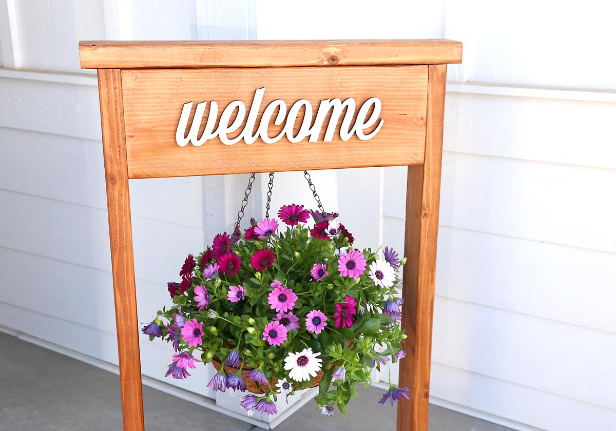 This wooden hanging planter is a fun way to spruce up your front porch without a lot of work. We’ve figured out the simplest way to make this DIY plant stand using easy to find supplies for today’s tutorial. This project is an easy one to tackle, even if you don’t have much experience building things, and it would make a lovely gift to give Mom for Mother’s Day! Total hands on time to make this DIY project is about two hours; however, that time will be split up over two days because you will need to paint or stain the wood and allow it to dry.