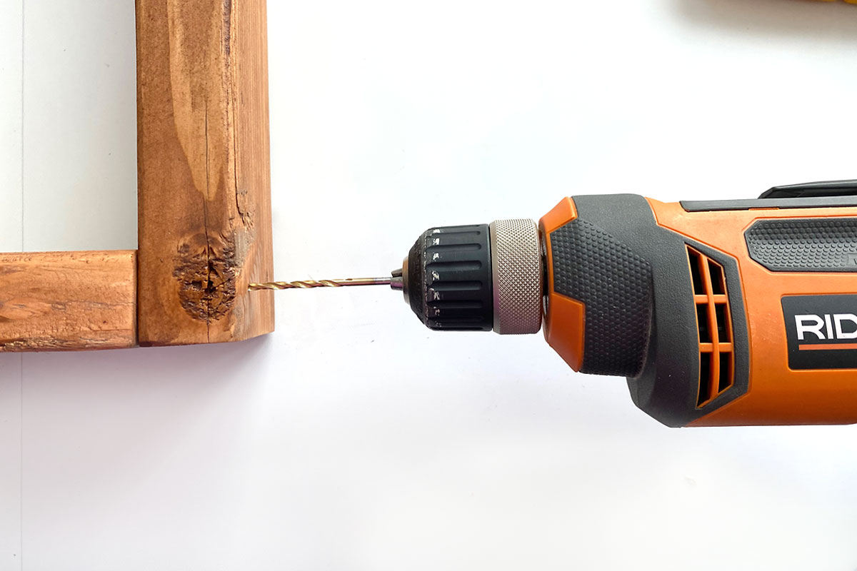 To make sure you can easily drive in the screws, set up the wood and drill holes first, using a drill bit that’s a little smaller than the screws you are using. If you have two drills, you can keep the drill bit on one and the screwdriver bit on one. If you only have one drill, you’ll need to swap back and forth for each step.