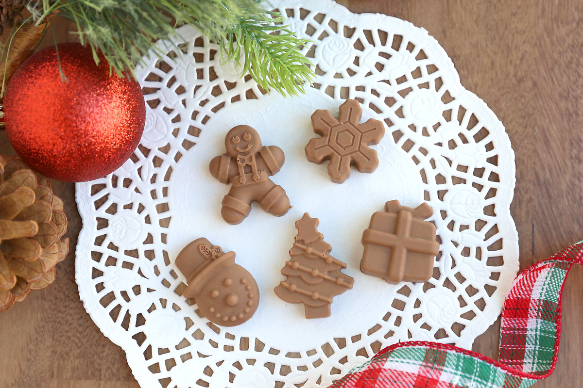 Before we get to the recipe, we have to talk about how cute these little guys are! If you want to keep things simple, you can make your meltaways in mini cupcake liners, but if you want them to be absolutely adorable, order a set of silicone Christmas molds. The set I ordered was only $10 and it worked perfectly for making the meltaways. They were easy to fill and the chocolates were super simple to remove from the molds. Seriously these candies could not be cuter!