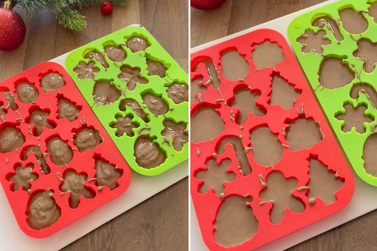 Note: I tried a different set of molds first, and they were very small, making them hard to fill. I definitely recommend this sicilone Christmas mold set.