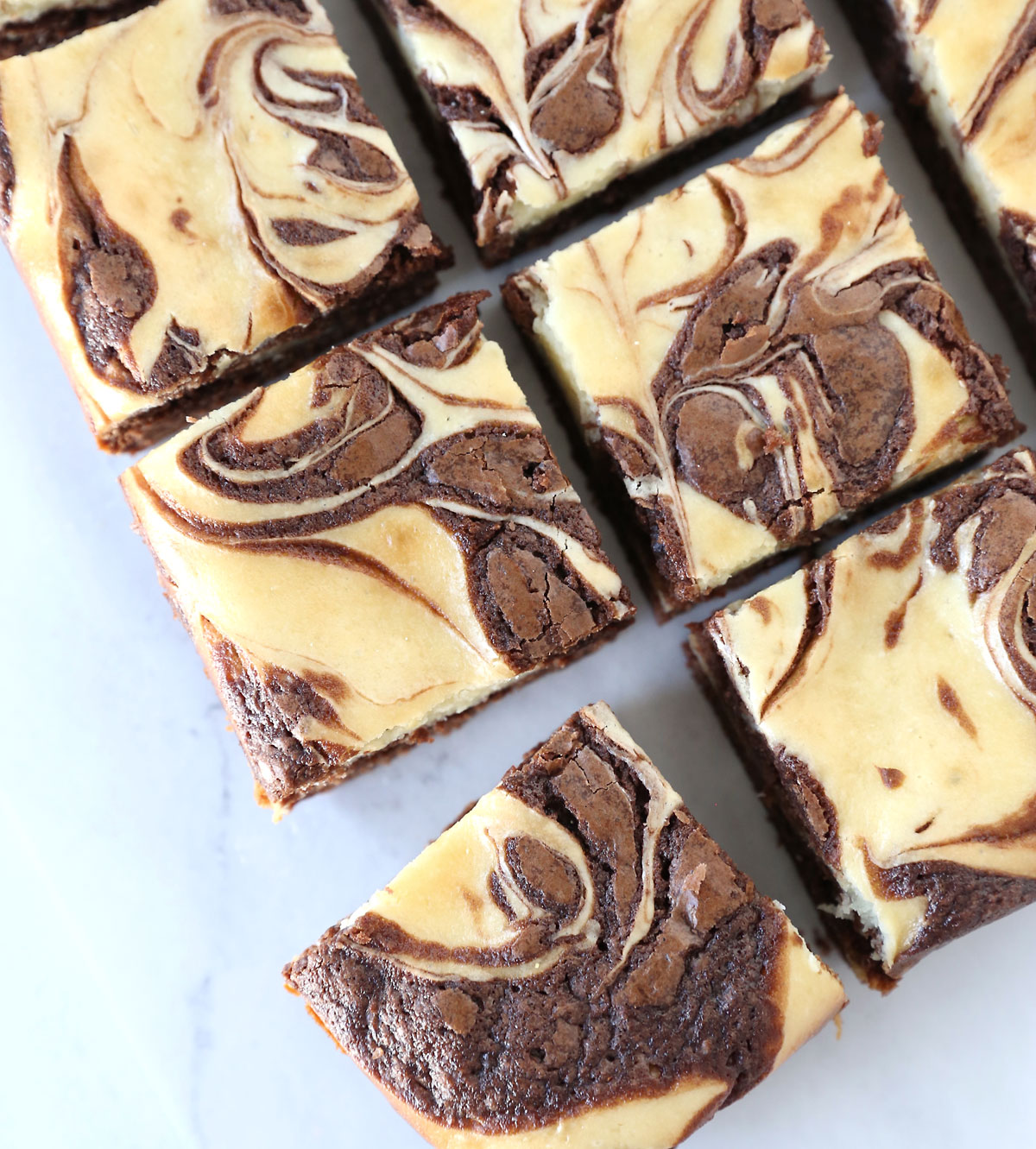 In today’s post: Thick, rich brownies swirled with a decadent cheesecake layer are a gorgeous dessert everyone will love. They start with a boxed brownie mix so they’re SUPER easy to make!