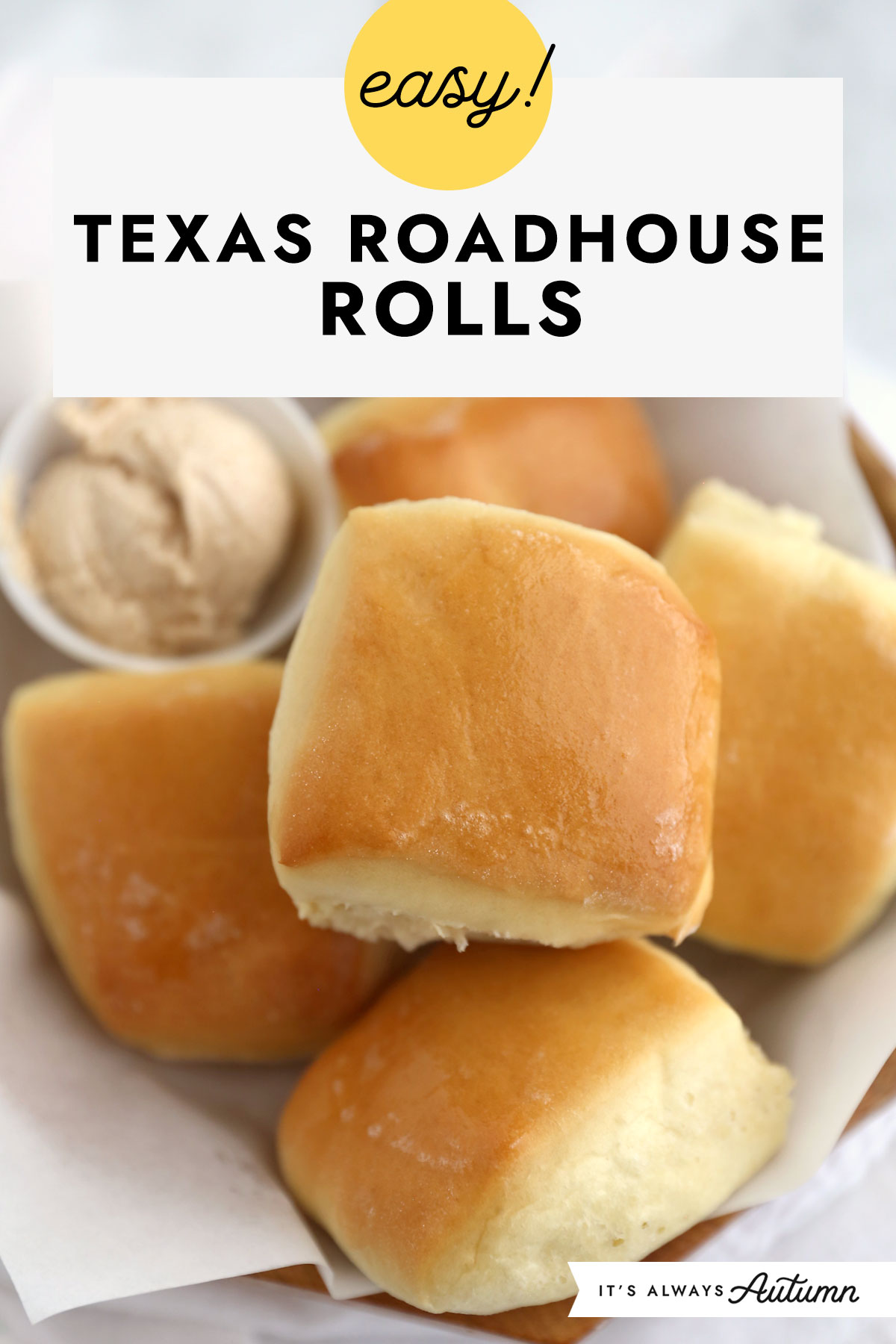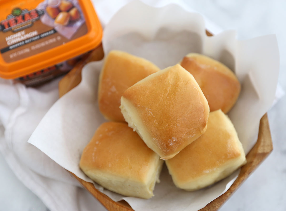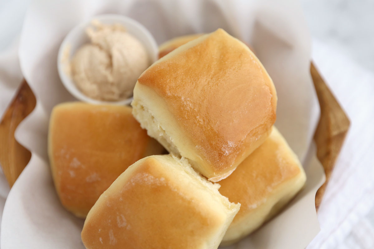 I love bread in almost all it’s many forms, but the fluffy rolls at Texas Roadhouse are especially delicious. Every time we go to the restaurant I have to remind myself not to eat so many that I’m full before the rest of my food comes. My sister has been telling me to work on a recipe for making Roadhouse rolls at home and I’m so glad I finally did! These rolls make any meal special – they are absolutely delicious – and leftovers made great sandwiches. Grab some honey butter at the store or make homemade cinnamon butter and you’ll be making amazing Roadhouse dinner rolls on the regular.