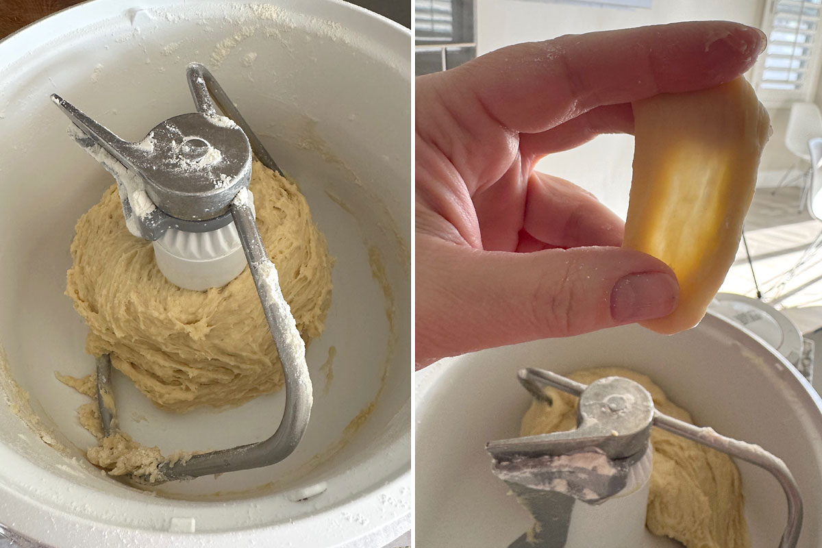 Proper kneading is essential for yeast breads to turn out soft and light. The windowpane test is an easy way to tell if your dough has kneaded for long enough. Pull off a small piece of dough and roll it into a ball. Then gently pull the ball apart. You should be able to stretch the dough thin enough that you can easily see light through it without the dough breaking. If the dough breaks quickly, it requires longer kneading.