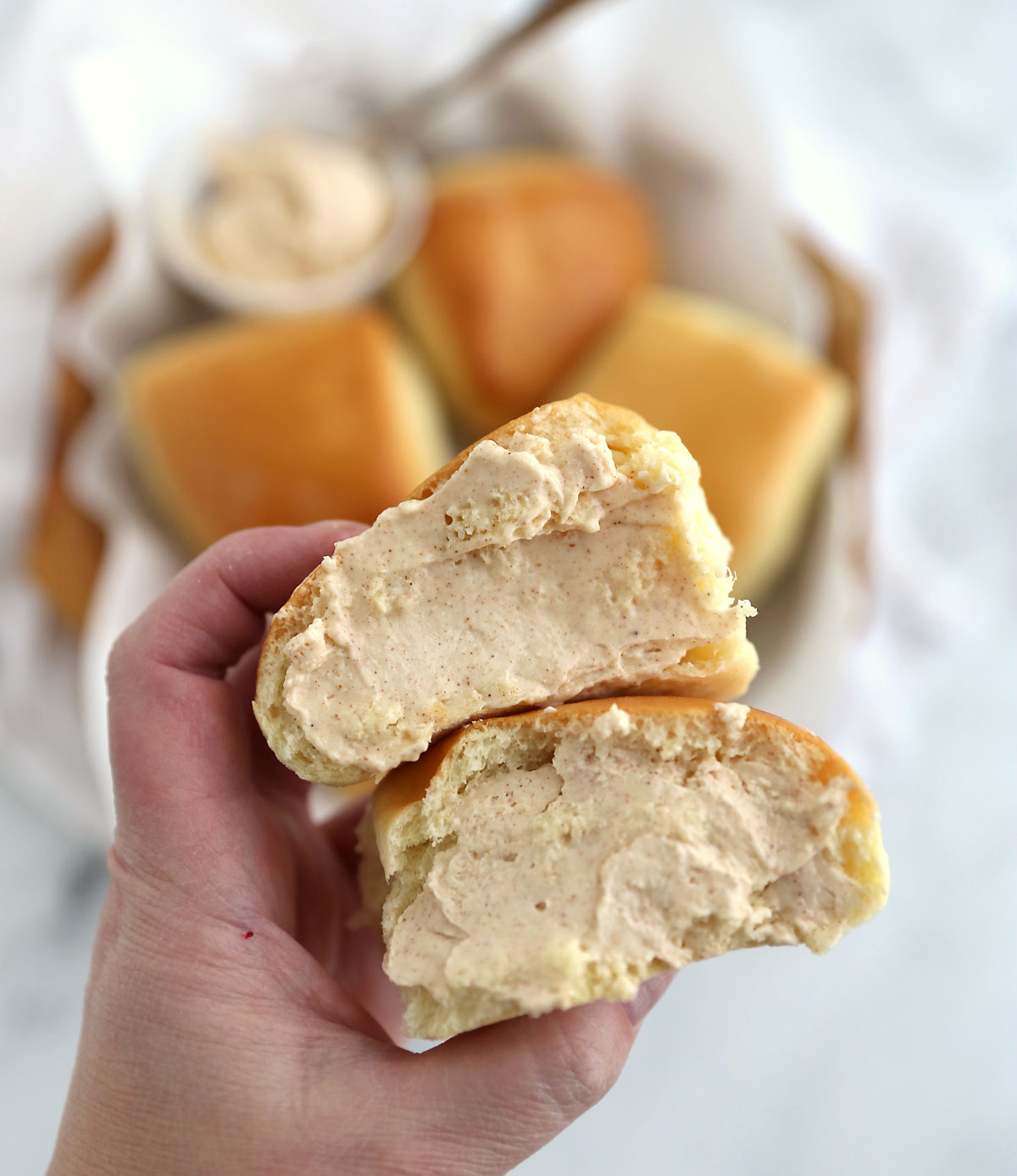 I think these rolls are best served warm and they are delicious with butter or honey butter! If you have leftovers, let them cool completely then place in a zip top bag or airtight container and eat within a day or two. If you’d like to keep leftovers for longer, place the bag in the freezer, then thaw on the counter whenever you want soft, fresh rolls.